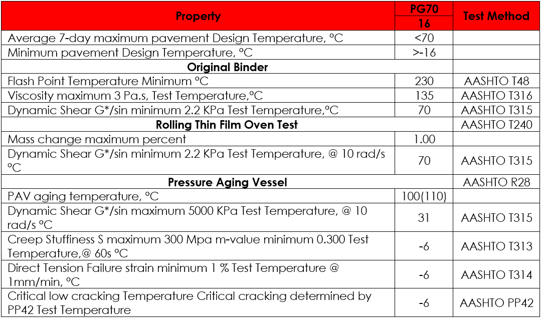 Performance Grade Bitumen or PG is a type of bitumen that is graded according to its performance in different temperatures and is highly used in flexible pavement. PG bitumen grading system is based on the bitumen performance in low, medium, and high temperatures. The PG 70-16 means this grade can be used in an area where its maximum temperature is 70 and its lowest temperature is -16 degrees Celsius.